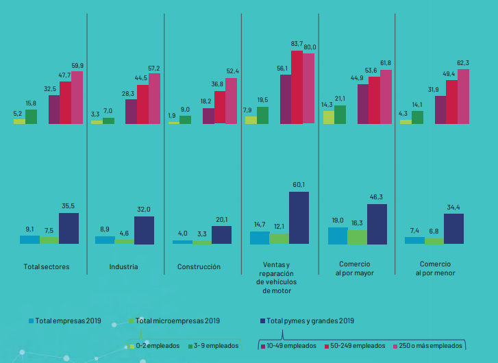 En cambio, si hablamos en empresas medianas, es decir de 50 a 249 empleados, debemos decir que el sector de venta y reparación de vehículos motor se diferencia mucho más.