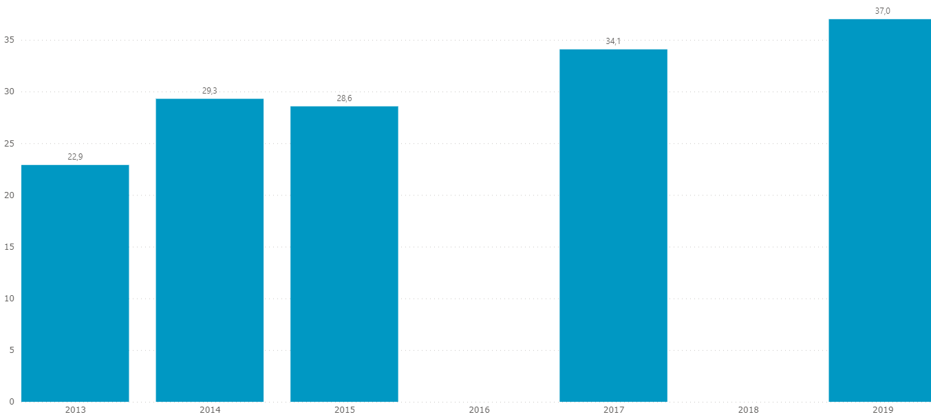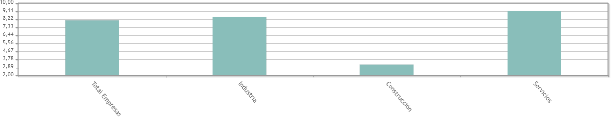 Según el Instituto Nacional de Estadística (INE), es resultado del porcentaje total de empresas que usan este sistema en su empresa, dividido en los 4 sectores que se pueden ver. Como se puede ver poco a poco las empresas van implantando este sistema.