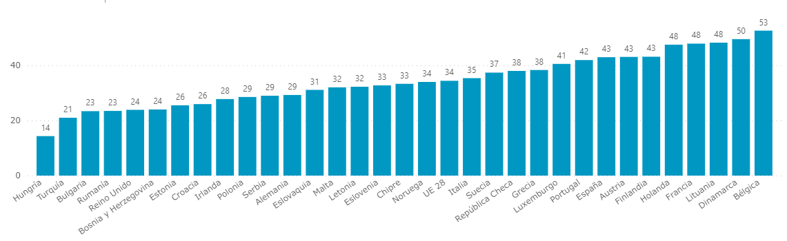 Como se puede ver, España es uno de los 10 países europeos que más usan este sistema para ser exacto el 8º país que mas uso hace de él.