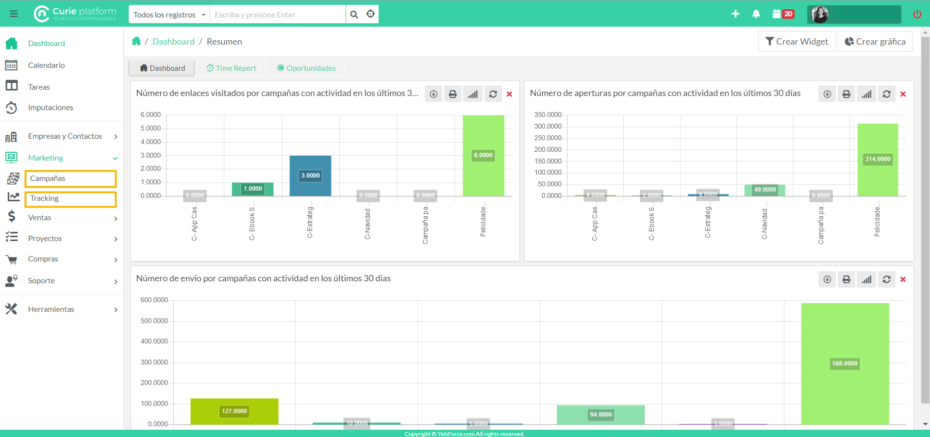 Es una Plataforma de Inteligencia de Cliente que integra un CRM con módulos funcionales para los 3 procesos principales de cualquier empresa: Marketing, Ventas y Servicios; además de otros procesos importantes como los Recursos Humanos (RRHH), la calidad, la productividad o la experiencia de cliente. Curie Platform una aplicación en la nube por lo que te permite gestionar eficientemente las relaciones y experiencias de los clientes internos y externos de tu empresa. Además, un referente en CRM desarrollado en Canarias concretamente en Tenerife.