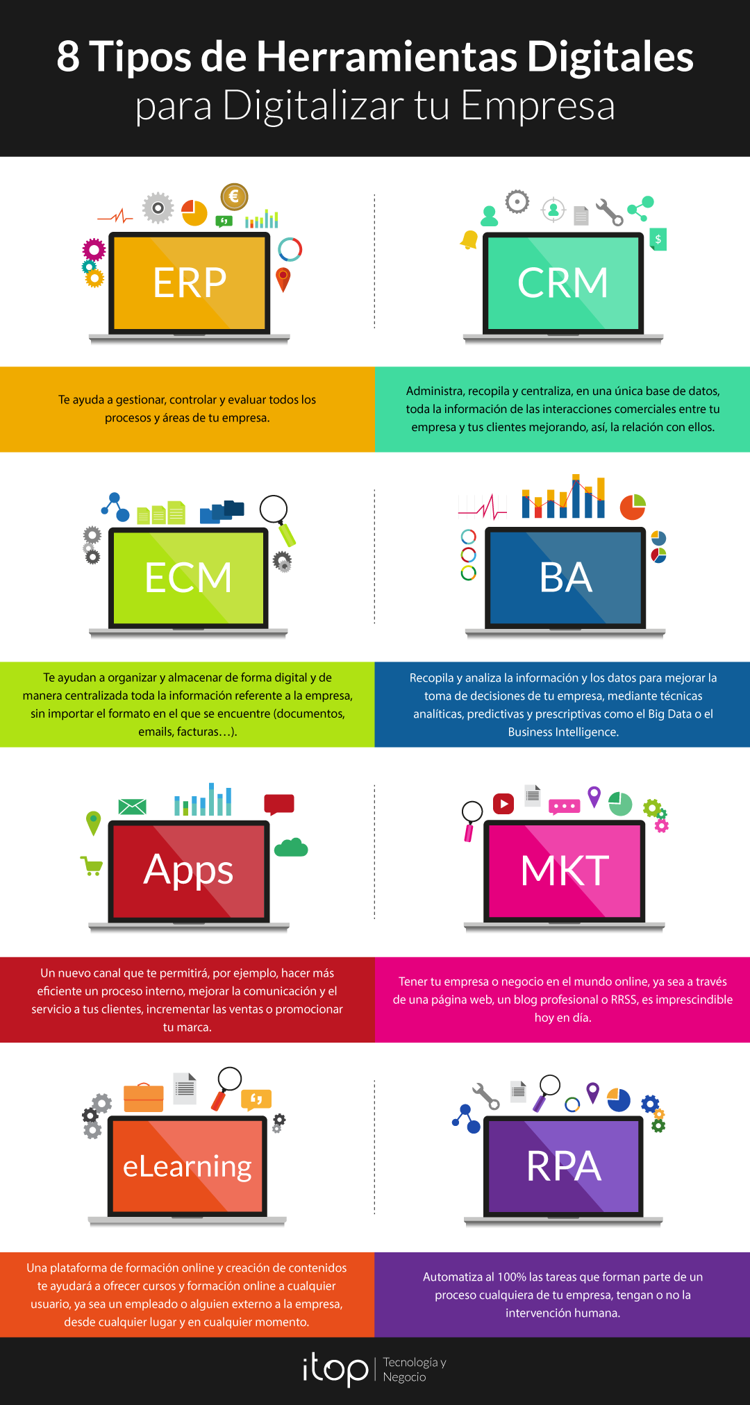 Las herramientas digitales nos ayudan a agilizar los procesos de negocio, detectar los puntos débiles y tomar mejores decisiones, con lo que aumenta nuestra productividad, eficiencia y volumen de negocio.