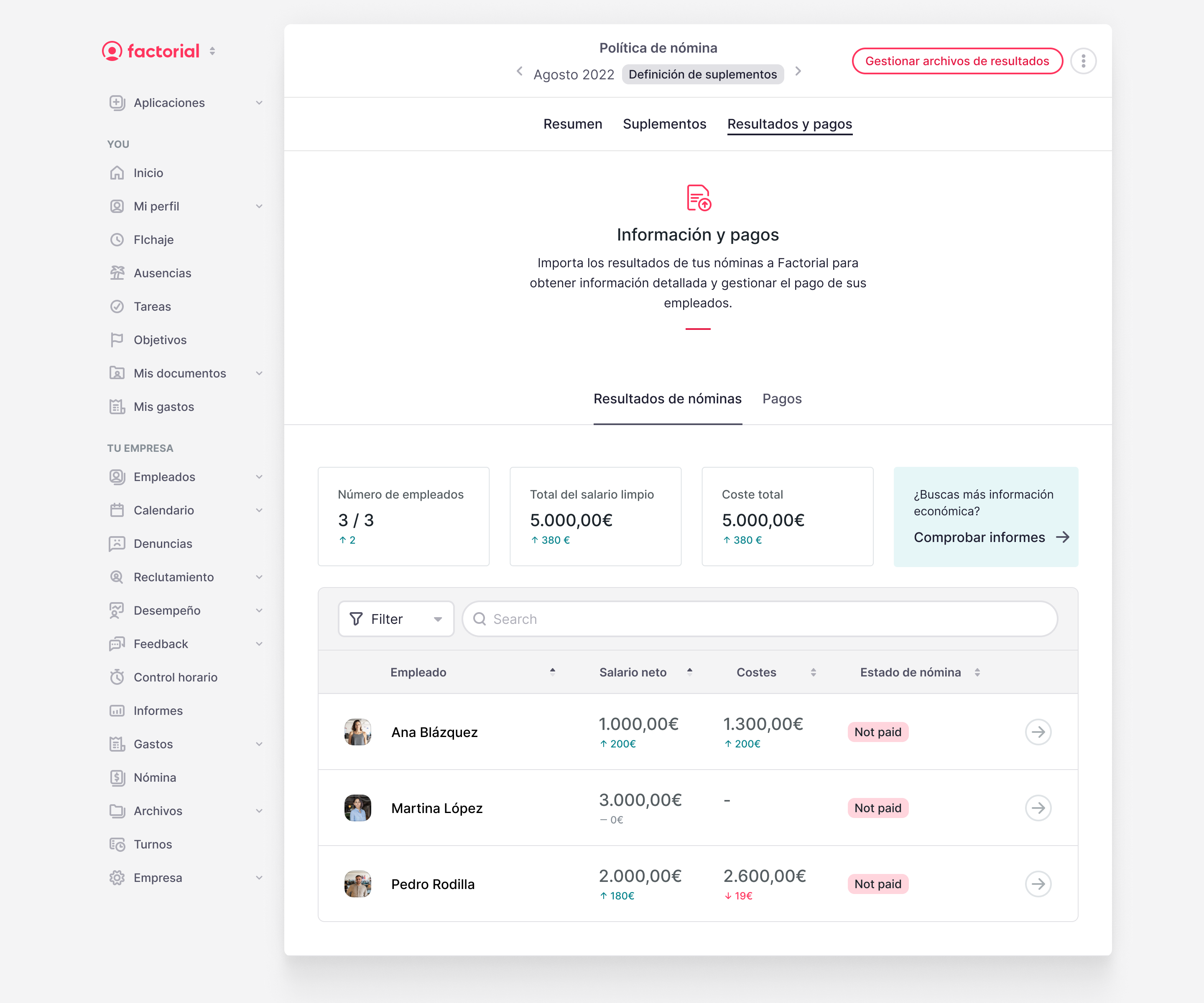 La aplicación permite gestionar al completo el ciclo de vida de una persona en una organización, agilizando las gestiones relacionadas con ausencias, turnos y horarios, nóminas, contratos y gastos, así como procesos relacionados con el crecimiento y bienestar de las personas.
