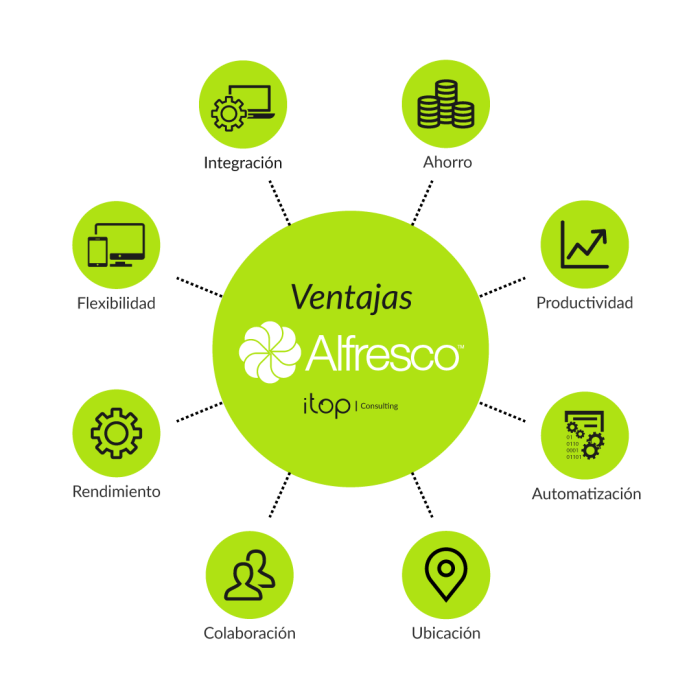 Algunas ventajas del producto Alfresco:
