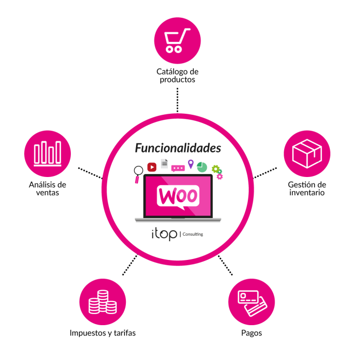 WooCommerce ofrece una amplia gama de funcionalidades para crear y administrar una tienda en línea. Algunas de sus funcionalidades son: