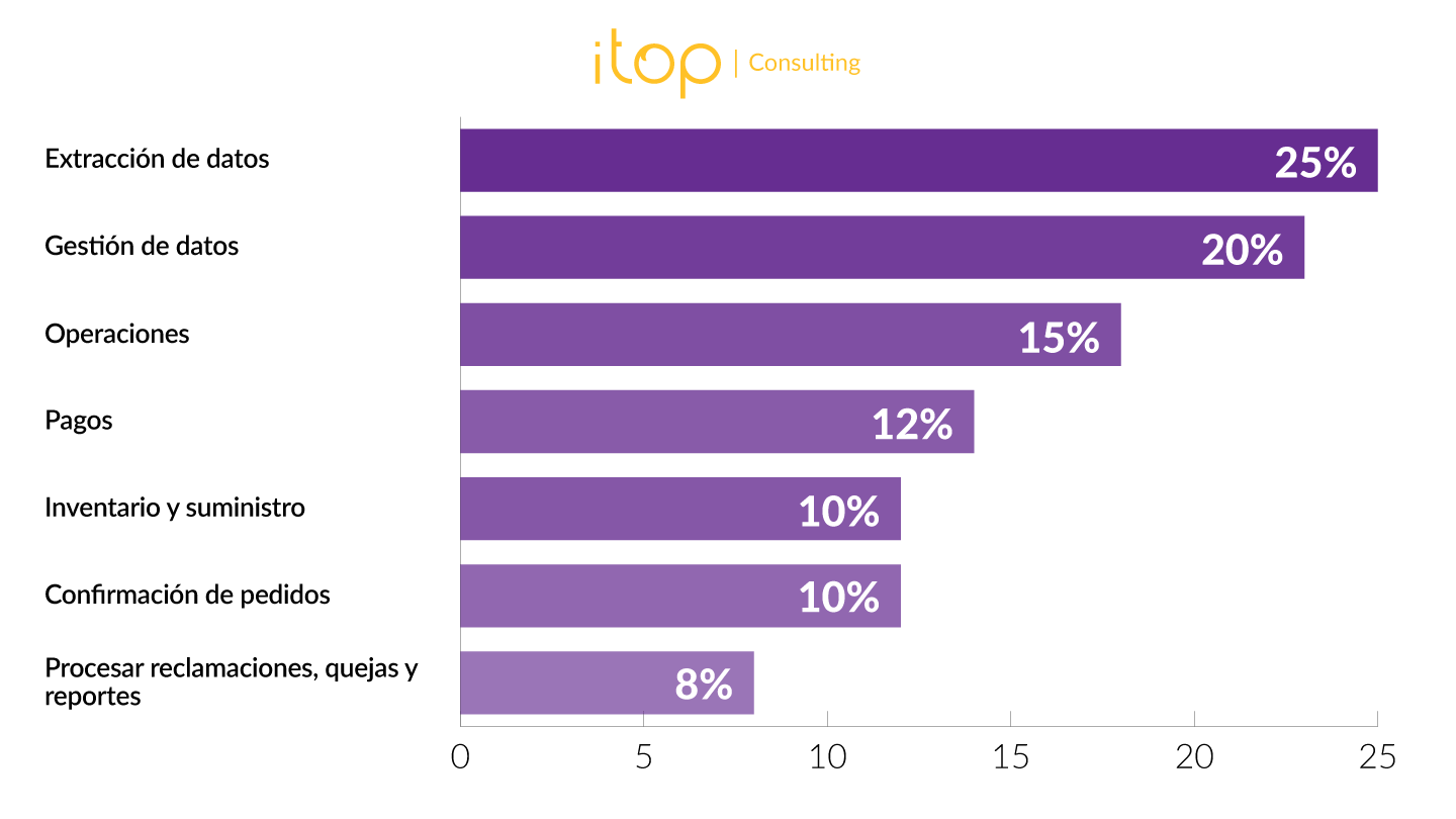 Nuestra experiencia en la implantación de soluciones RPA es muy amplia, en lo referente a sectores de actividad, tamaño y complejidad de empresa. En Itop, el proceso de implementación o puesta en marcha de una tecnología de RPA no es un proceso complejo ni complicado, realmente es sencillo y se lleva a cabo relativamente en poco tiempo. Pero, eso no quiere decir que no requiera de la metodología adecuada para asegurar el éxito de la implantación: