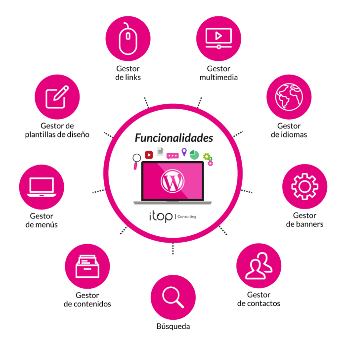Wordpress es un sistema de gestión de contenidos desarrollado bajo el modelo open source por lo que no tiene coste de licencias. Como plataforma cubre y satisface todos los requisitos para la creación de una web, incluyendo la gestión de usuarios, contenidos, idiomas, plantillas de diseño o búsquedas. Entre sus múltiples aplicaciones se incluyen webs corporativas, intranets, extranets, blogs, publicaciones online o sitios personales.